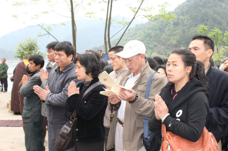 29日上午,四众弟子在桂林市灵川县青狮潭水库放生。桂林市佛协会长、栖霞寺住持慈心法师,佛协副会长、法藏禅寺住持宝志法师及两寺的出家师父参加了放生法会,参加放生活动的四众弟子约有一百人。青狮潭水库总面积170平方公里,湖水面积约30平方公里,湖水容量6亿立方米,是离桂林市最近,最大的原始生态自然保护区。