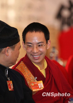 据悉,在之前的宗教界委员小组讨论会上,十一世班禅也曾发言。与会的中国基督教三自爱国运动委员会主席傅先伟告诉记者:“前几天,班禅委员就温家宝总理的报告讲了几点看法,他觉得应该维持西藏发展的发展和稳定,发挥宗教在经济发展和社会和谐中的作用。可以看出,他的思维很宽敞,既考虑到本民族的事情,又考虑到国家经济发展。虽然发言只有约10分钟,但挺丰富、全面。”