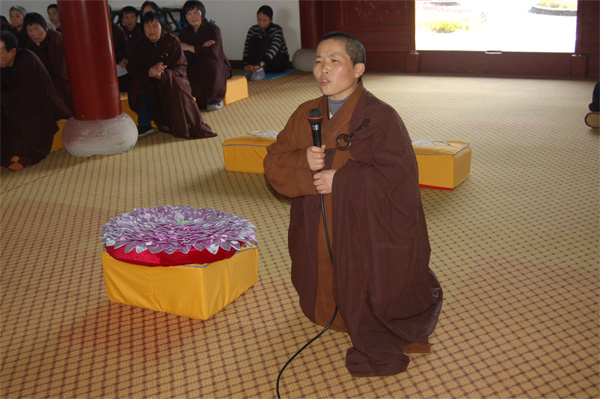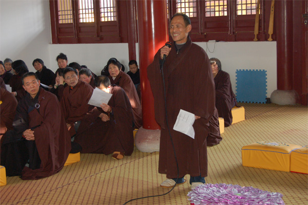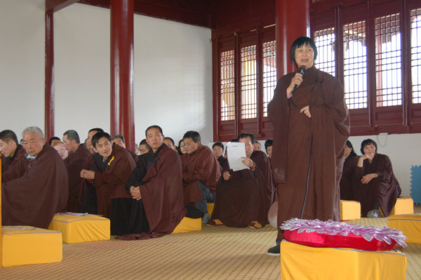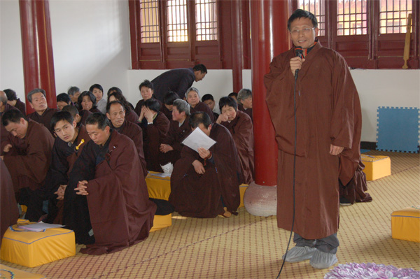 2010年3月28日下午,参加东林寺三月份下半月百万声佛号闭关的四众弟子功德圆满,在香光殿举行了大回向和经验交流会。