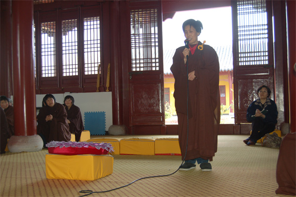 第二个上来发言的男居士来自农村,他在关中经历了三个阶段,第一阶段是紧张,夜梦中常见冤情债主;第二阶段是坚定信愿;第三阶段是法喜充满。他说感觉自己年轻十岁,身心皆得大欢喜。他表示一定要听佛菩萨的话,不仅自己念佛求往生,还要感化家人亲友一道来念佛了生死。
