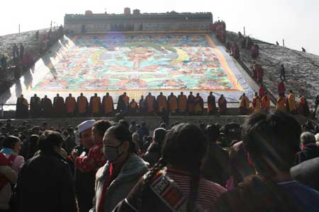 3月1日,农历正月十三,甘南州的各藏传佛教寺院举行了一年一度的瞻佛节活动,祝愿新年吉祥如意。瞻佛节是藏佛教的一种宗教节庆活动之一,合作寺院有全藏区仅有的一座供奉藏传佛教各派宗师的米拉日巴佛阁,是安多地区藏传佛教的名刹之一。米拉日巴佛阁每年举行的各种佛事活动非常严格和讲究,场面宏大庄重、观者如云,秩序井然,中午时分,瞻佛仪式正式开始,僧人们将佛像展开,并默念经文,信教群众们争相祈求吉祥。此后两天,各寺院还将举行法舞表演和酥油花灯展示活动,祈求五谷丰登、国泰民安、幸福吉祥,一派节日喜庆气氛。在党的惠民政策的光辉照耀下,甘南藏区处处呈现政通人和,民族团结,宗教自由,欣欣向荣的繁荣景象。(来源:新华网)