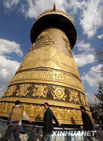 高21米巨型转经筒亮相云南 游客争先恐后参观(图)