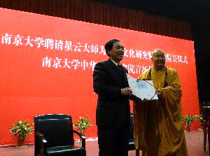 获南京大学颁予“中华文化研究院名誉院长及客座教授”的佛光山开山宗长星云大师,3月22日上午即应邀在南大敬文活动中心做了首场讲座,再次强调文化的力量深远广大,现在要把前人历史留下来有价值、有意义、实用的文化内容,藉助南京大学“中华文化研究院”积极培养人才,让中华文化再发展、提升,未来光大于全世界指日可期。