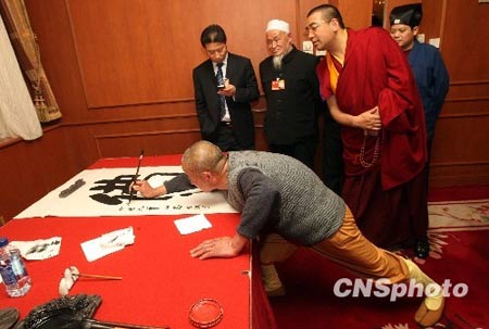 两会花絮:宗教界委员“功夫书法”夺人“眼球”