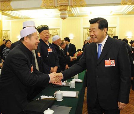 2010年3月4日上午,中共中央政治局常委、全国政协主席贾庆林看望出席全国政协十一届二次会议宗教界委员并参加了宗教界委员小组讨论会。