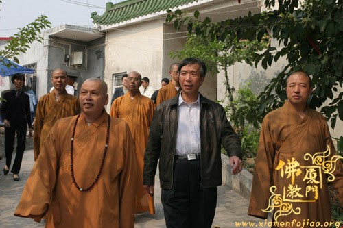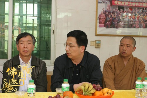 左起:大明寺主持定恒法师、市民宗局一处处长黄镇辉、市佛协秘书长净心法师