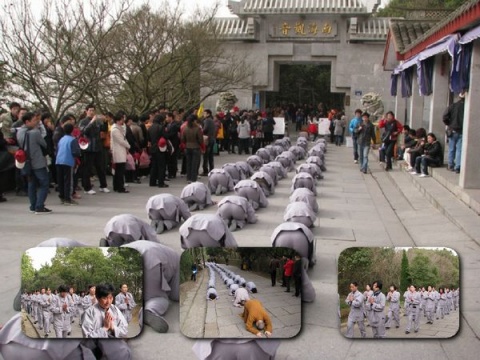 浙江嘉兴大曹王寺朝拜团三步一拜朝拜普陀山(图)