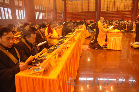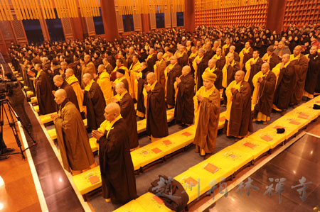 晚上6点半,大众云集万佛楼举行了盛大的供灯法会。柏林禅寺方丈明海法师主法,依唐代不空三藏所订的仪轨—《普贤愿海灯明供养法》,奉请诸佛菩萨加持与会大众,并祈愿国泰民安,法轮常转。