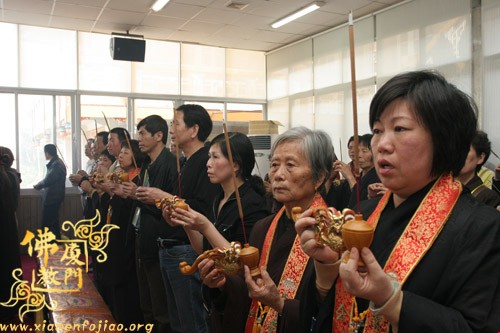 【厦门佛教在线】3月22日报道:厦门虎溪岩寺水陆法会经过内坛、外坛诸位法师七天七夜的诵经、拜忏、念佛、施放焰口等佛事,今日功德圆满,回向法界。