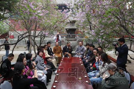 中国佛学院研究生思和法师带领学员们参观了寺院各个殿堂,并介绍了法源寺的历史文化。随后,学员们在悯忠阁前赏花品茗,学禅悟道。期间,宗性法师还为大家作了精彩的开示。