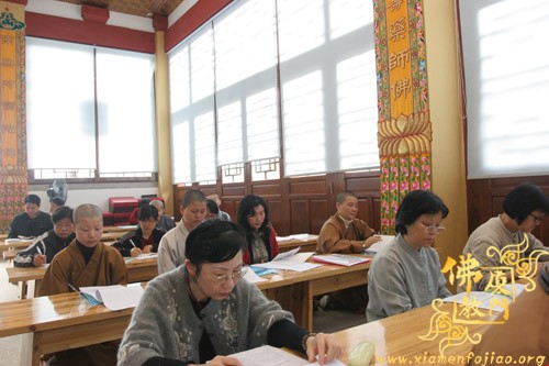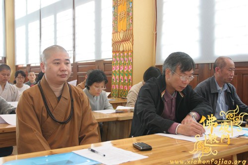 下午13时,在福建省佛教协会副会长、市佛教协会常务副会长定恒法师的主持下,学员对二位会计师讲解的内容,结合各寺庙财务管理的实际情况进行了交流讨论。