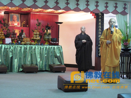 上午9时30分,在十普寺五楼白公长老纪念堂,圆宗长老作为代表主持上香,举行报恩普佛一堂。随后,了中长老在开示时除回忆与白圣长老共事时的点滴外,也对与会法师们的孝心表达敬意与欣慰之情。