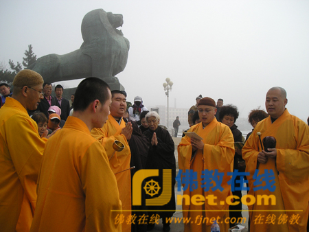 2010年3月31日,辽宁省大连市旅顺蟠龙山正觉讲寺在军港公园海岸边举行放生活动。宣机法师主法,领众诵放生仪规,约50名信众参加了放生活动。(文:一平)