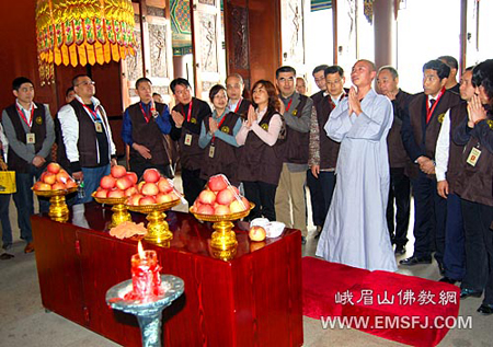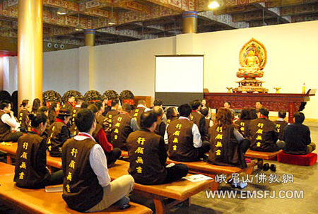 参加本次禅修活动的深圳华商书院博学班的同学有38人,均是来自全国各地的企业家。他们在峨眉山大佛禅院的法师们和书院教授的指导、带领下,进行为期两天的禅修实践。这次禅修的主要课程有《止静》、《止语》、《早晚课诵》、《晨读佛经》、《佛门仪轨》、《普贤十大愿》、《坐禅》、《禅茶一味》、《佛禅祈愿文、禅歌》等,营员们通过这些课程感悟佛法的精义,修炼自己的心性,提升自我,深入理解、并将普贤菩萨十大行愿精神运用到实际生活和工作中,以发展自己的事业。(图、文:济世)