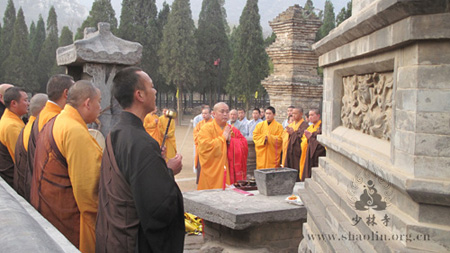 2010年3月31日,河南省登封市嵩山少林寺举行清明祭祖活动,少林寺僧众在方丈永信法师的带领下,到少林寺塔林扫墓祭奠历代祖师。