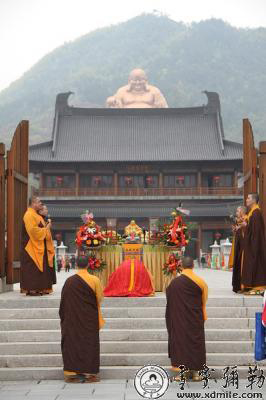 当日上午8点30分,怡藏法师在“大慈佛国”牌楼向全体信众念唱朝山祈愿文疏,预祝法会圆满成功,全体信众幸福安康,祈愿:佛佑玉树,灾害蠲除!逝者得生净土,永脱诸难。生者身心安宁,福寿康乐。社会和谐、世界和平!