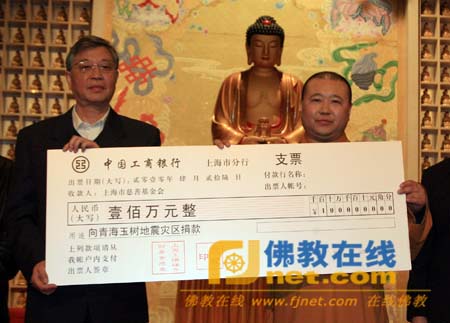 上海玉佛禅寺向青海玉树地震灾区捐款100万
