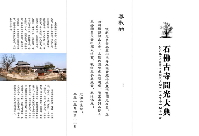 地址:浙江省嘉兴市凤桥镇梅花洲石佛古寺(邮编314007)