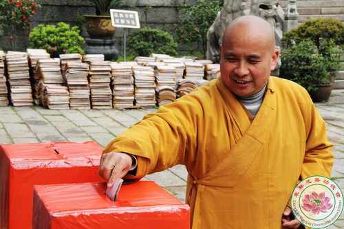在整个活动期间,东林寺僧众、信教居士、来往游客,青年、老人、孩子,工人、农民、义工等等都踊跃参与到为灾区贡献力量、奉献爱心的募捐活动中来,东林慈善功德会的工作人员向每一位奉献爱心的人士都深深鞠上一躬致以最诚挚的谢意。
