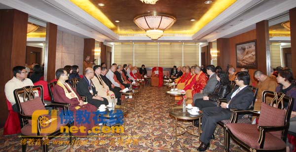 2010年4月21日上午11点半,中国佛教协会会长传印长老在国宾酒店会见了出席“第十三次中韩日佛教友好交流大会预备会议”的各国代表团成员和与会嘉宾。