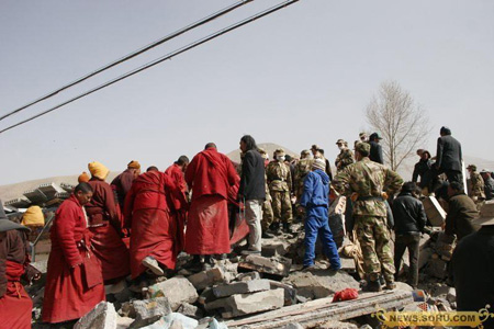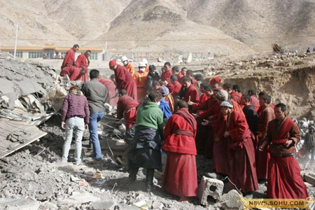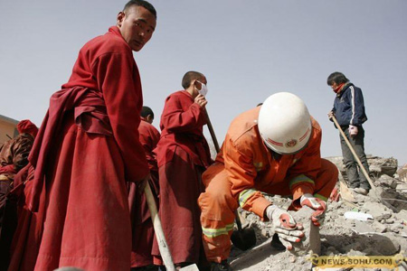 4月15日,回良玉副总理在受灾最严重的青海玉树州府所在地结古镇考察指导抗震救灾工作。回良玉来到一家倒塌的商场前,很多寺院僧人正在抢救受灾群众。听说寺院僧人自发组织抢险救灾,回良玉高兴地说,大家从寺院赶来救灾,这充分显现出我们的僧侣和信教群众,爱国、爱教、爱家乡,一方有难就要八方支援。玉树是多民族多宗教的地区,要充分发挥民族宗教界人士在抗震救灾中的重要作用。