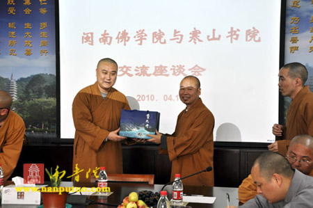 2010年4月11日至12日,江苏省苏州市寒山书院教务长本觉法师率领苏州寒山书院参访团一行18人,到福建省厦门市南普陀寺及闽南佛学院参访。