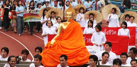 恭请灵鹫山富贵金佛 桃园体育馆举行泼水节