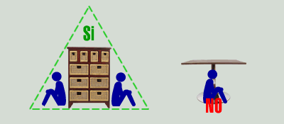 简单地说,当建筑物倒塌落在物体或家俱上的屋顶重力会撞击到这些物体,使得靠近它们的地方留下一个空间。这个空间就是被我称作的“救命三角”。物体越大,越坚固,它被挤压的余地就越小。而物体被挤压得越小,这个空间就越大,于是利用这个空间的人免于受伤的可能性就越大。