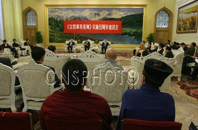 据新华网2010年4月10日报道 宗教事务条例实施五周年座谈会10日在北京召开。中共中央政治局委员、国务院副总理回良玉在会上强调,《宗教事务条例》的颁布实施,是我们党和国家宗教工作历史上的一件大事,党中央、国务院对此高度重视。我们要认真总结条例实施五年来的成绩和经验,继续深入抓好条例的宣传培训,不断推进宗教工作法制化进程,着力提高依法管理宗教事务的能力,切实把党的宗教工作基本方针落到实处,充分发挥宗教界人士和信教群众在促进经济社会发展中的积极作用。