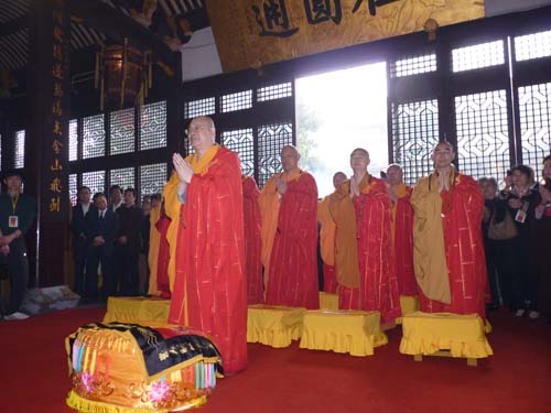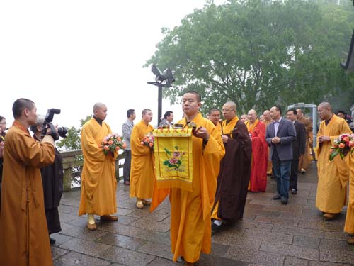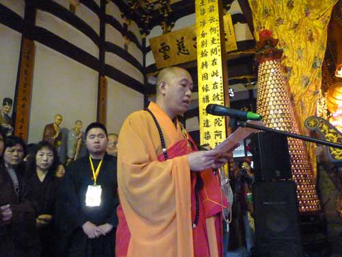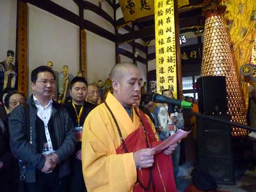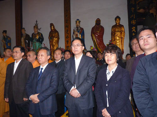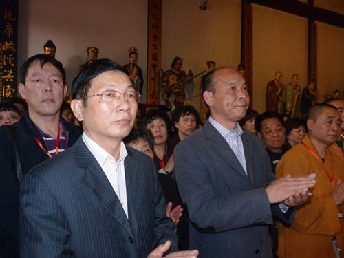 全国人大代表、中佛协副会长、湖南麓山寺方丈圣辉大和尚,中国佛教协会副会长、普陀山负责人道慈法师,省民宗委副主任倪忠扬先生,省民宗委宗教一处处长吴梦宝先生,市委常委、统战部部长陈作荣先生,市人大副主任钱成良先生,市政府副市长孟建新先生,市政府副秘书长陈伟民先生,市人大民侨委主任叶国良先生,市政协副秘书长孙丽雅女士、市民宗局副局长陈碎训先生,香港温州同乡会会长蔡俊远先生,省佛协副会长、奉化市雪窦寺方丈、宁波市佛协名誉会长怡藏大和尚,省佛协副会长惟航法师,省佛协副会长、台州市佛协会长、国清寺监院允观法师,省佛协副会长、宁波七塔寺方丈可祥大和尚,省佛教协会秘书长徐明仁先生,宁波市佛协会长、天童寺方丈诚信大和尚,厦门市佛协会长、南普陀寺方丈则悟大和尚,厦门佛教协会秘书长净心法师,杭州市佛协会长、灵隐寺监院光泉法师,宁波市佛协副会长、阿育王寺方丈界愿大和尚,杭州市佛协副会长、上天竺方丈定本大和尚,杭州市佛协副会长、三天竺监院智圆法师,杭州市佛协副会长月真法师,杭州市净慈寺监院妙高法师,温州市佛教协会副会长兼秘书长、太平寺住持万如法师,温州市佛教协会副会长、妙果寺监院达照法师,温州市佛教协会副会长、头陀寺住持悟智法师等有关领导、诸山长老、温州市佛协诸位法师及四众弟子两千余人参加此次法会。