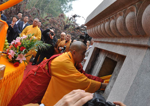 2010年4月21日上午,温州市江心寺隆重举行木鱼老和尚舍利入塔法会,法会由厦门南普陀寺慈善基金会办公室主任正兴法师主持。
