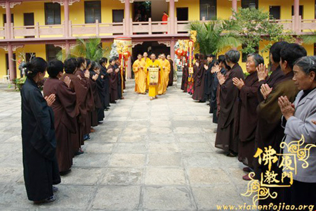 2010年3月30日上午10时整,福建省厦门市石室禅院修法中心(福寿楼)2010年第一期“药师精进关”圆满结束,全体出关大众在护法法师、义工及随喜善信的迎护下,集体到大雄宝殿前举行回向仪式,忠明法师主持仪式。此次闭关法会历时七昼夜(168小时)。
