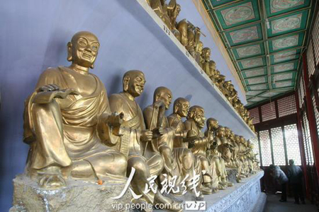 500铜罗汉重现河南开封大相国寺 吸引众多游客参拜