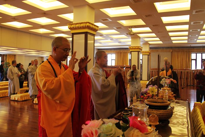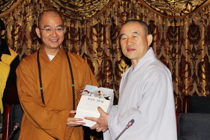 学诚法师首先代表龙泉寺常住对韩国佛教天台宗朱正山长老以及韩国的各位长老的到来表示欢迎。去年正山长老来北京访问时,法师刚好在杭州参加讲经交流会,所以去年没有因缘见面,今天能在龙泉寺会面也是因缘殊胜。