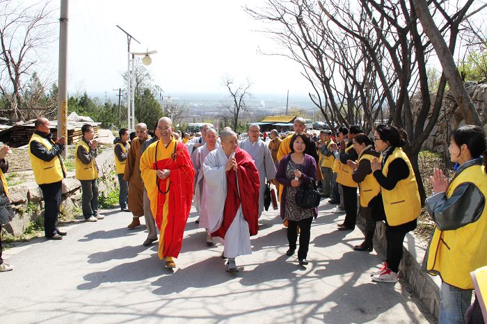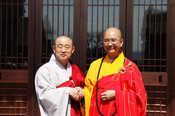 2010年4月28日上午十点,韩国佛教天台宗总务院长正山长老一行参访北京龙泉寺。龙泉寺方丈学诚法师率两序大众热情接待了参访团一行。