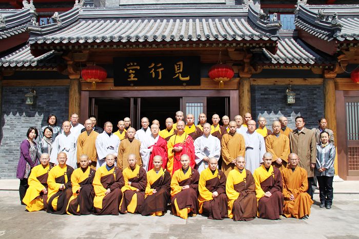 在见行堂龙泉寺僧俗举行了隆重的接驾仪式,大众齐诵炉香赞、心经等梵呗。随后在见行堂前合影留念。接下来,韩国参访团在执事法师的陪同下,一起参观龙泉寺。