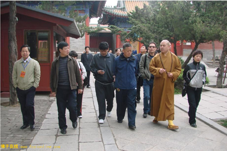 宽旭法师陪同代表们参观了大兴善寺,并向他们介绍该寺院的历史、现状及未来规划。代表们也纷纷对大兴善寺未来的发展提出自己的建议。