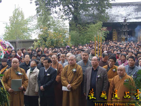 在法会中,宽旭法师宣读定慧法师的生平,冯建龙和本昌法师均作为代表致辞。法会持续了一个多小时,并定于15日上午10时举行荼毘法会。(文 图:宏沩)