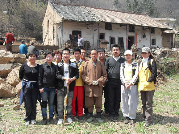 3月28日早八时半,朝阳初生,山泉淙淙。志愿者一行三十余人九时半至梨园坪,义道师傅不顾身体重疾,法喜充满,径直在村口等候陕西联络处的志愿者们。随后师领大家参观其寝处,寒室虽简陋,但温暖清净,正适合师于此养病,让一直挂念师父身体安康的志愿者们略感安慰。