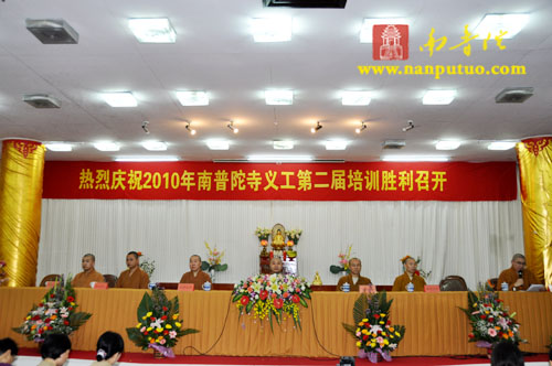 2010年5月29日上午8时,由南普陀寺举办的为期二天的“南普陀寺第二届义工培训”活动在南普陀寺讲堂隆重开幕。厦门佛教协会会长、南普陀寺方丈则悟大和尚,厦门佛教协会副会长、闽南佛学院副院长法源法师,南普陀慈善会常务副会长慧然法师,南普陀寺大知客德煌法师、知客戒舟法师、僧值常明法师等出席开幕式并在主席台就座。南普陀寺维那圆满法师主持开幕式。