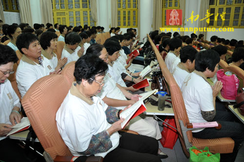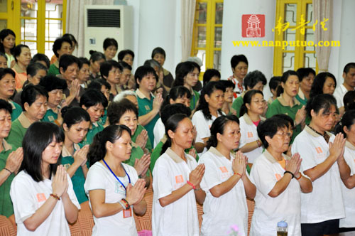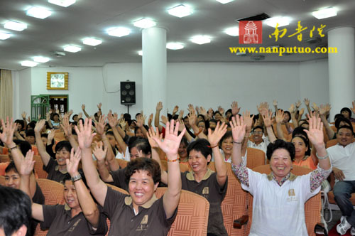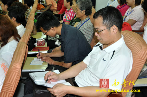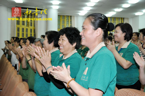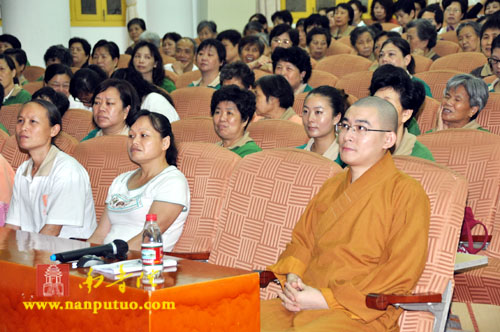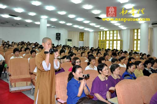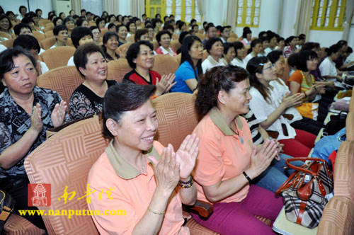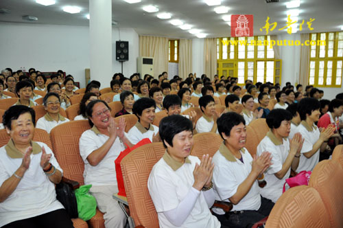 开幕式后,先后礼请则悟大和尚、常明法师、法尊法师、静安法师分别作了题为《如何做一名义工》、《佛法于生活中的运用》、《六度万行菩萨道》、《做个快乐的发心菩萨》之精彩开示。傍晚6时40分,原厦门市文化局彭一万局长为义工们作了题为《爱我厦门》的生动演讲。诸位法师、大德居士的讲授赢得了在场义工们阵阵热烈的掌声,现场400余人共同分享着这特别的“精神盛宴”。