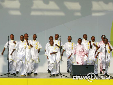 非洲娃娃首先用非洲土著的方式,欢迎现场观看的观众们,他们奇特的服装、语言以及表达方式都让现场观众感到很新鲜。但接下来的表演,是既熟悉又新鲜:这些年纪在10岁到15岁的孩子,耍出了猴拳、醉拳、蛇拳等中国功夫,动作利索而标准。表演的最后,他们更让观众诧异:20个孩子站在舞台上,用流利的中文唱出了《明天会更好》。