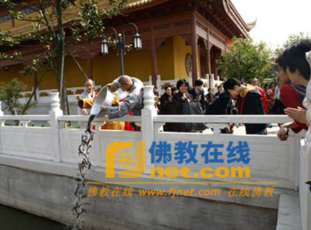 当日上午8点,同觉寺在大雄宝殿前举行放生仪式,该寺两序大众带领信众把生灵放入河中回归自然,让在场的每个人都能真切地体会到“生之愉悦”。