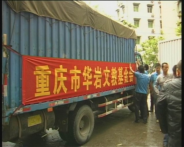 中国新闻网这样报道:7日凌晨,记者在重庆市垫江县沙坪镇李白村看到,华岩文教基金会捐赠的价值5万元的帐篷、棉絮、食品等救灾物资已运抵垫江。7日8时许,该基金会将向垫江、梁平的受灾群众分发此批救灾物资。重庆新闻网、人民网、中国青年网、中国广播网、凤凰网、网易、新浪、搜狐等52家网站在5月7日相继对此事作了转载报道。而在之前的汶川大地震、武陵山体滑坡、四川遂宁地震和前不久的玉树大地震中都能看到身穿红色华岩义工背心和黄色僧衣的救援队伍,这群特殊的队伍始终在灾害发生的第一时间赶到受灾地区并亲自把救灾物资发放到受灾群众的手里。