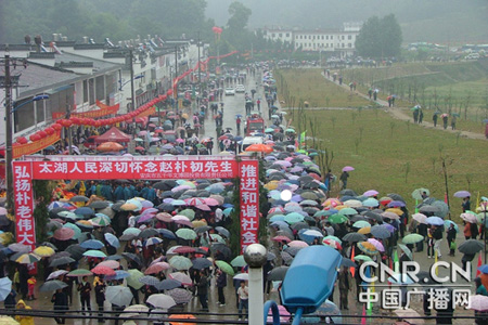 在纪念活动中,太湖县当地干群万余人参加了纪念活动。