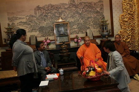 2010年5月24日,斯里兰卡驻华武官和大使夫人拜访北京灵光寺,就将在灵光寺举办的佛教卫赛节事宜与灵光寺方丈常藏法师进行交流。