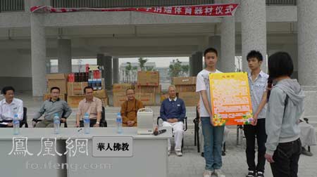 学生宣读感谢信(图片来源:凤凰网华人佛教)