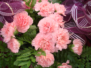 康乃馨,大部分代表了爱,魅力和尊敬之情,红色代表了爱和关怀。粉红色康乃馨传说是圣母玛利亚看到耶稣受到苦难流下伤心的泪水,眼泪掉下的地方就长出来康乃馨,因此粉红康乃馨成为了不朽的母爱的象征。与玫瑰所不同的,康乃馨代表的爱表现为比较清淡和温馨,适于形容亲情之爱,所以儿女多献康乃馨给自己的双亲。