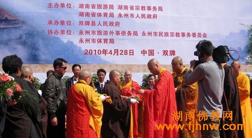 湖南省委常委、省委统战部部长李微微,省人大常委会副主任谢勇,省政协副主席刘晓,国家旅游局综合司司长唐洪广,中共中央统战部原办公室副主任、全国工商联办公厅主任路印林,省宗教事务局局长汤新华,省体育局局长李舜,永州市委书记黄天锡,永州市委副书记、市长龚武生,市领导唐长久、李良铁、陈金荣、唐松成、蒋吉秀、董石桂、蒋善生等出席此次活动的开幕式,并随喜参加阳明山万寿寺护国息灾祈福法会进行观礼。