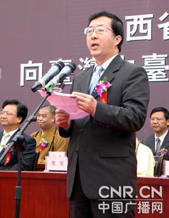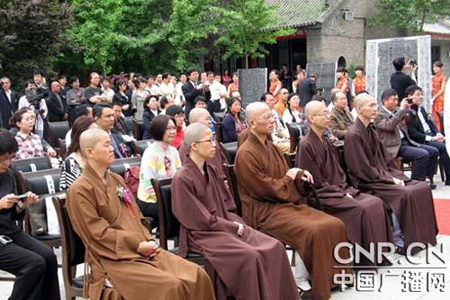 国台办交流局局长李维一、陕西省副省长景俊海、台湾中台禅寺开山方丈惟觉长老等出席赠送仪式并分别致辞,中国佛教协会副会长增勤法师等出席赠送仪式,西安碑林博物馆馆长赵力光在赠送仪式上介绍了拓片情况。